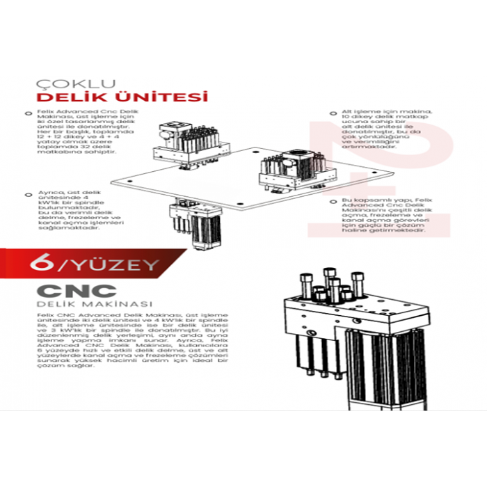 • Felix Advanced Cnc Delik Makinası, üst işleme için iki