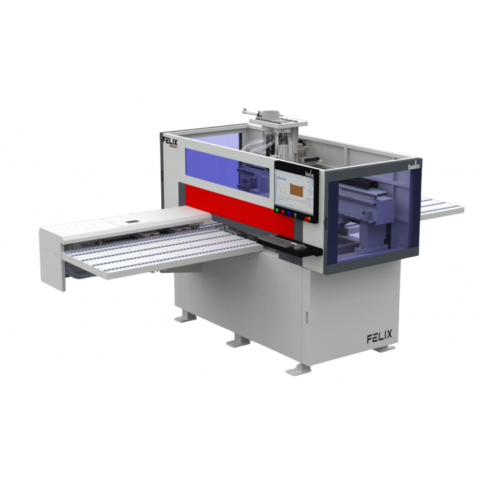 the Felix Compact CNC Boring Machine, the roller discharge table provides