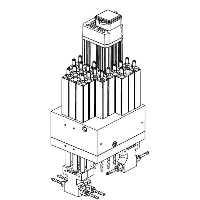5-face machining. This unit features 9 vertical drilling bits, 6 horizontal